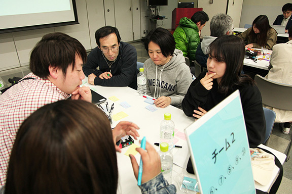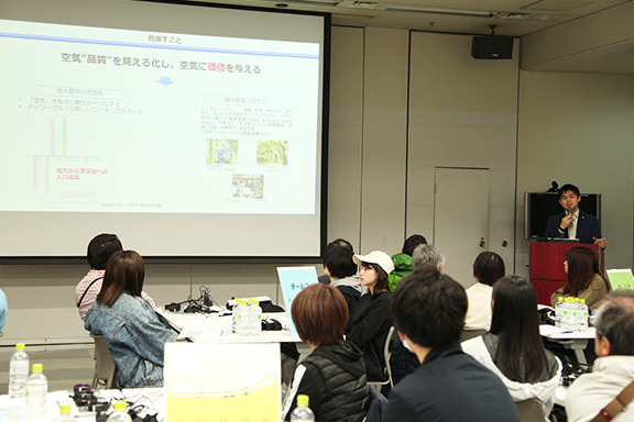 1日目のオリエンテーリングで空気品質を体感した参加者は、ファシリテーターの牛島清豪氏(株式会社ローカルメディアラボ 代表取締役)によるアイデアを生み出すためのワークを受けた後、アイデアソンを実施しました。さまざまな世代、職種により編成されたチームでは、いろいろな立場から意見が出て活発な議論が展開されました。最後に各チームがプレゼンテーションを行い、成果を発表しました。